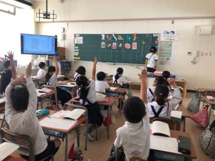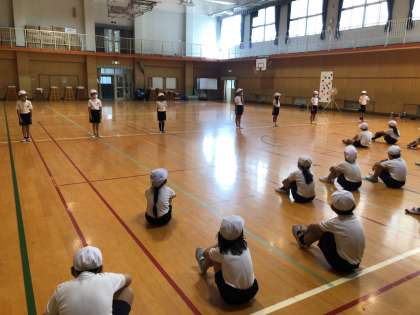 体育の学習では正しくラジオ体操ができるように練習をしています。