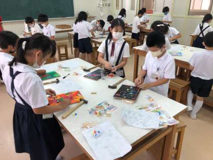図工の時間に作っていたコリントゲームの作成が大詰めに入っています。