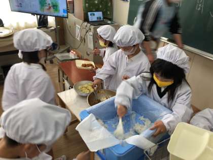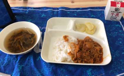 沖縄名物「タコライス」と「もずくのスープ」が出ました。