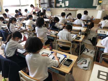 今日は毛筆で「日」の字に取り組んでいました。じっくり時間をかけてていねいな字を書き上げていました。