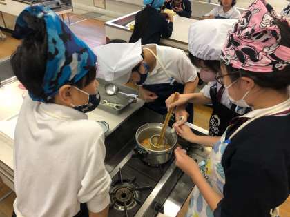 家庭科時間にようやく取り組めるようになった調理実習を行いました。