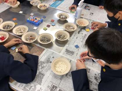2組のみんなはまずマグネット作りに挑戦さしています。