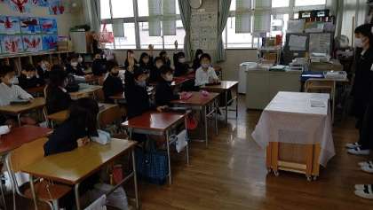 今朝は、集会委員会のお兄さん・お姉さんが2年生の教室にゲームをしにきてくれました。どのクラスもステレオゲームで盛り上がり、楽しいひとときとなりました。