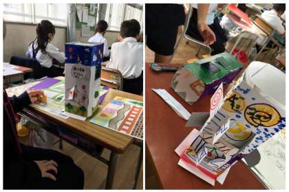 画用紙に窓を作ってカラフルに作り上げていた作品が・・