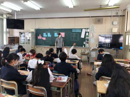 算数の学習では、複雑な図形の面積を求める練習問題に取り組んでいました。