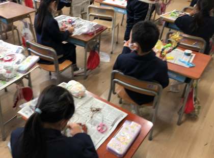 秋に収穫した自分たちが育てたアサガオのつるを使って