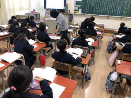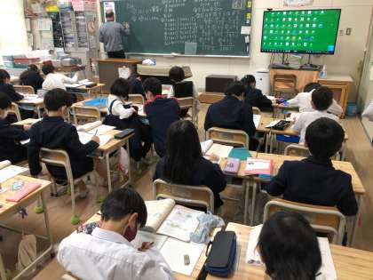 算数の時間では2学期に学習した内容のまとめ問題に取り組んでいました。