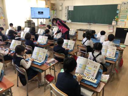 1フレーズずつ鍵盤ハーモニカとコーラスを交互に演奏しています。