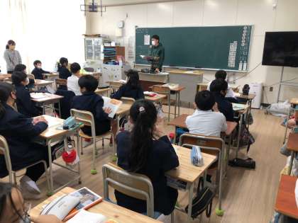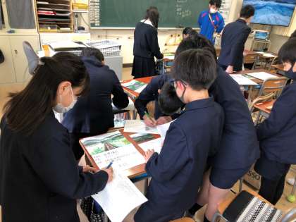 図画工作の学習で出来上がった作品を皆で見あって感想を