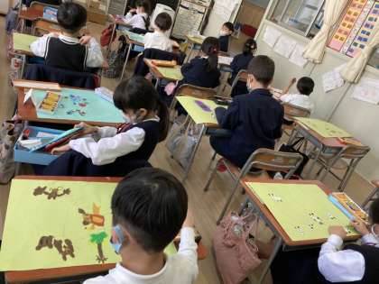 算数は2年生の学習のまとめ問題を解いています。