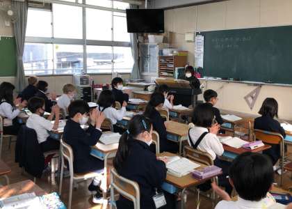 先生の演奏を聴きながら、手拍子を打つ活動をしています。