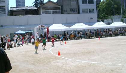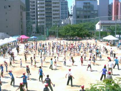 雲一つない青空が広がった朝、温度計が太陽の高さとともにぐんぐん上昇する中、運動場で恒例の3連合町会対抗の地域運動会が開催されました。