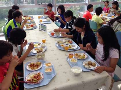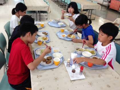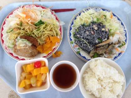 バイキング形式なので、トレイを見ると一人ひとりの食べ物の好みやお腹の減り具合がよくわかります。