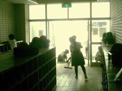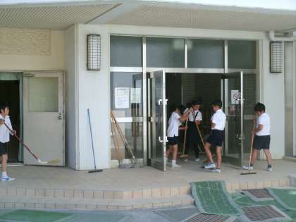 さらにまた、そうじの時間には6年生の掃除分担場所である講堂下足箱周辺の清掃を一生懸命にしていたクラスがありました。クラスの担任に聞くと、子どもたちが自分たちでやろうと相談して決めたとのこと。あらためて中大江の子どもたちの良さに感心しました。