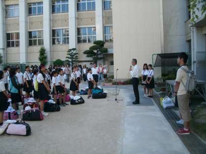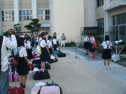 午後4時30分。淡路島の宿舎を出発した観光バスは予定通りの行程で無事に小学校へ到着しました。最後の帰校式では全員が体調を崩すことなく元気に整列し、しっかりと話を聞くことができました。終了後も、楽しかった行事の思い出を語りあう親子の姿が見られました。