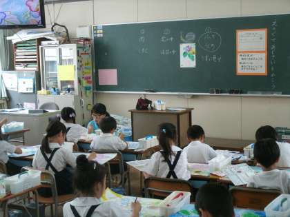 ☀上:2年1組/図工 「絵具であじさいをかこう」