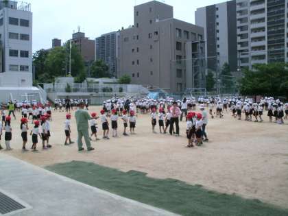 6月前半の2週間、スポーツチャレンジ週間としてクラス別で長縄とびに取り組みました。