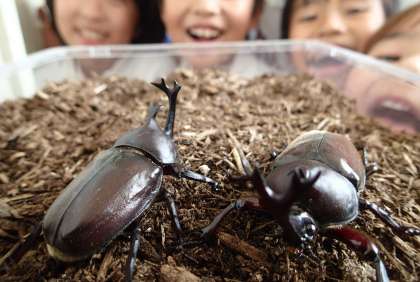 この日を楽しみに待ち続けていた子どもたちも、目を輝かせて堂々と動き回るカブトムシの姿に魅入っていました。