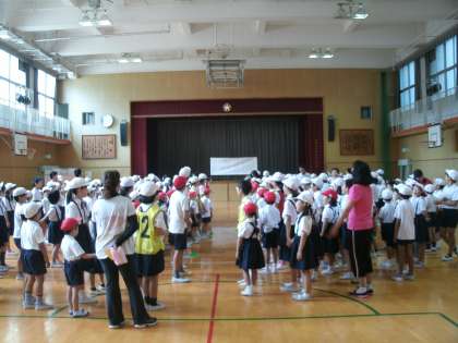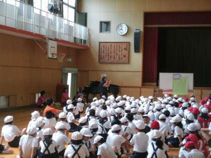 今朝は全校道徳の日。講堂で「ありがとうの花」を全員で歌いながら、「ありがとう」の意味について考えました。