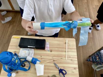 2年生は生活科の学習でおもちゃづくりに挑戦しています。
