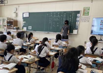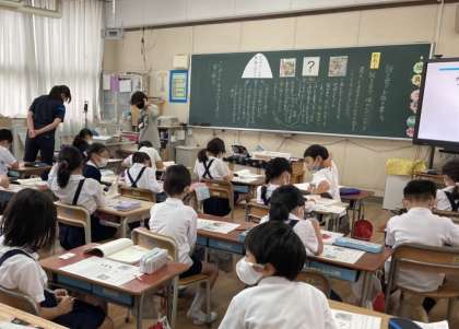 国語の授業では、絵を見て場面のつながりを考え作文する学習をしていました。