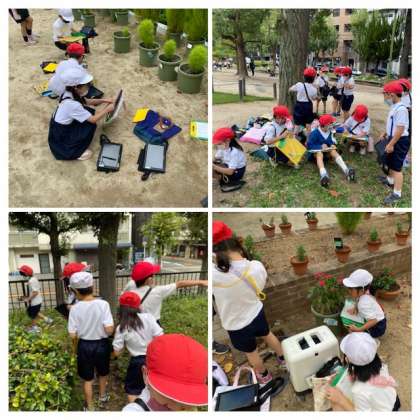 今日は生活科の学習で北大江公園に秋の自然観察に出かけました。いろいろな秋を発見してタブレットで写真に収めていました。
