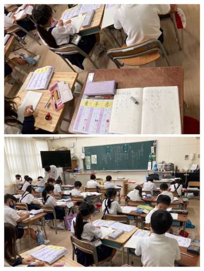 とめ、はね、はらいに気をつけて丁寧に書く練習をしています。