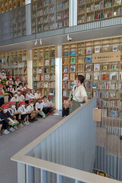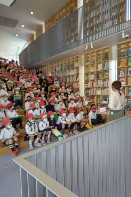 館内を利用するときの注意を聞きます。本の探し方や戻し方を説明してもらいました。