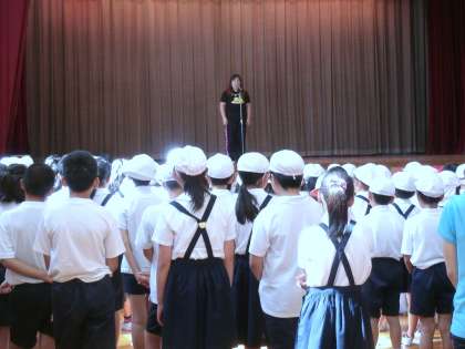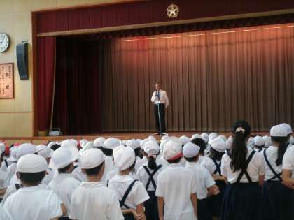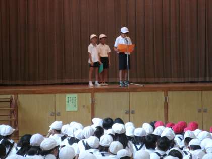 気象庁の予報では、大型で非常に強い台風11号は北上を続けており、今夜からあす17日にかけて西日本に上陸するおそれがあります。そのため、明日予定されていた終業式を1時間目に行いました。