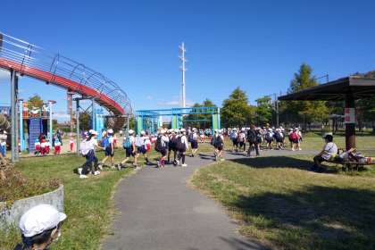 ロケット広場では幼稚園児がたくさん遊んでいたので、別の広場を目指すことになりました。