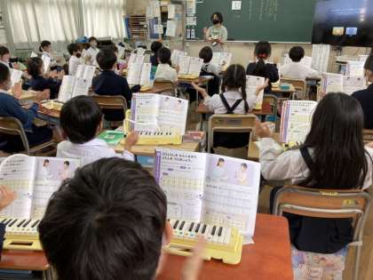 拍子を感じながら鍵盤ハーモニカを演奏しています。