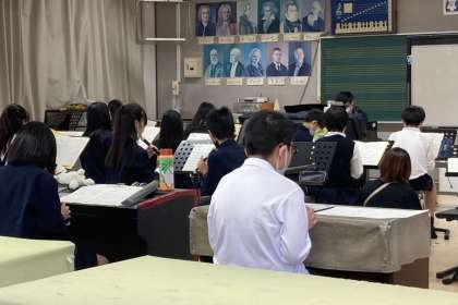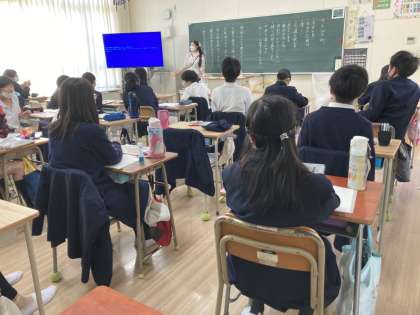 音楽の時間にリコーダーの合奏をしていました。先生のピアノに合わせて綺麗な音色を奏でていました。