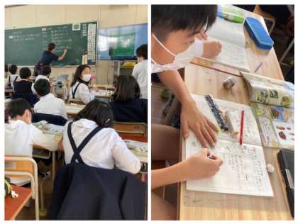 理科の授業では、夏から秋にかけて植物や生き物がどのように変化をしているか。観察したことをまとめていました。