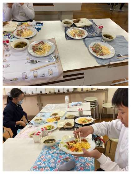美味しくできたおかずと味噌汁を給食と一緒にいただきます。