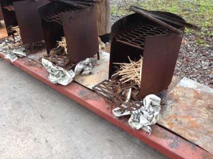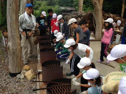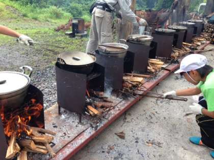 2日目の昼食は飯ごう炊飯でのカレーライスです。初めてマッチで焚き木に火をつける体験をする児童も少なくない中、指導員さんの丁寧な指導のお陰で全部の釜に点火が成功しました。