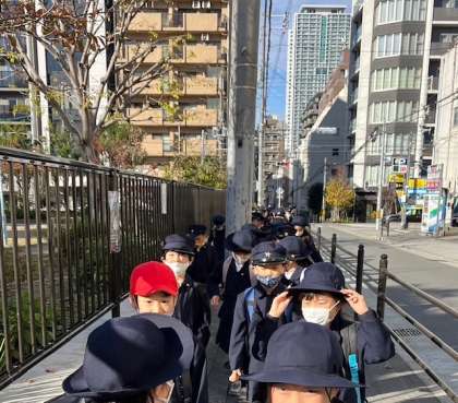 今日は2年生もいずみホールへ音楽鑑賞会に出かけています。行儀良く並んでいます。
