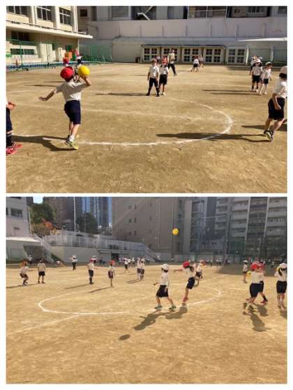 受ける、投げる、避ける。楽しみながらたくさんの運動をすることができました。