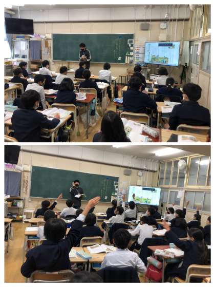 道徳の時間には「ヒキガエルとロバ」の教材を使って、生命の大切さについて話し合っていました。