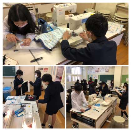 ナップザックづくりもいよいよ完成に近づいてきています。引っ張ってみて、ほつれそうな箇所にはミシンで補強をするなど、丈夫なナップザックが出来上がりそうです。