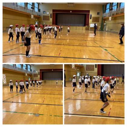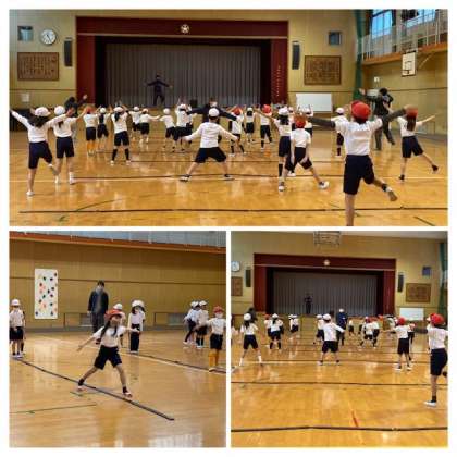 今日は1年生の体力向上のために、ゲストティーチャーの方が来てくださり、楽しく体を動かすいろいろなプログラムを体験させてもらいました。