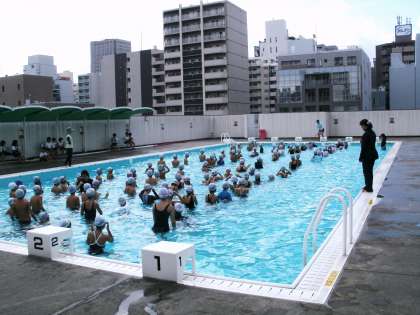 6月22日から始まったプール水泳学習も、いよいよ今週いっぱいで終了します。屋上設置のプールのため、水泳の実施がの天候に左右されやすく、雨や雷の気象条件に注意しながら、どの学年も残り少ないプール水泳の時間を他学年と調整しながらフル活用しています。
