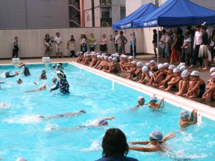 子どもたちは家族の前でこれまでの練習した成果を発揮しようと、息と力の限りを尽くして元気に泳いでいました。保護者の皆様には、順路やマナーなど授業参観にご協力をいただき大変にありがとうございました。