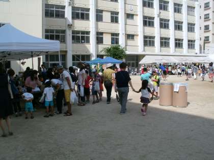 まだ汗ばむ残暑の本日午後2時、中大江地区地域活動協議会主催による恒例行事「中大江子ども会フェスタ」が、本校の運動場や講堂で盛大に開催されました。