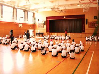 1時間目は3・4年生が合同でダンスの練習を行っていました。指導の先生の踊りの動きや合図に合わせて、子どもたちの元気な掛け声や笑い声が講堂に響いていました。