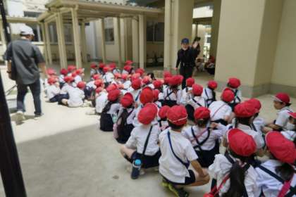 今日は、北大江公園に出かけます。出発前に注意を聞きます。