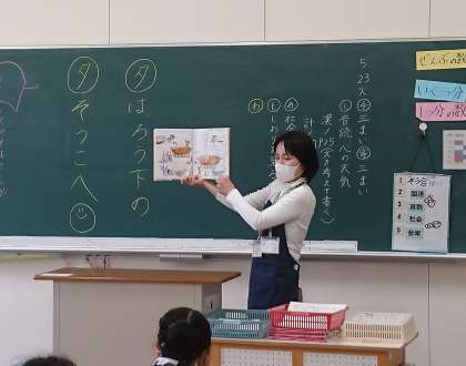 絵本を持って教室に現れたスマイルさんに子どもたちも
