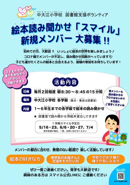 読み聞かせボランティア「スマイル」メンバー募集のお知らせ