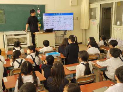 今日、1年生が初めてタブレットを使うということで、そのお手伝いに6年生が行きました。