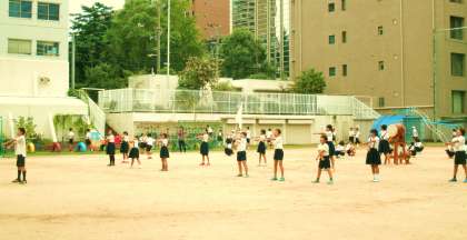 放課後の運動場。午前中の雨も上がり、ようやく運動場が乾いたため応援団の練習が可能となりました。