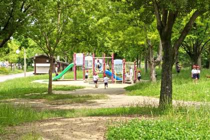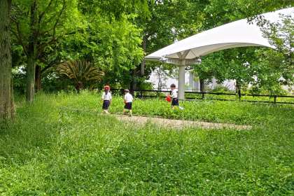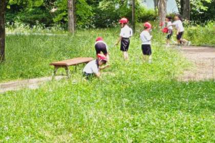 遊具で遊ぶ子や虫とりをする子、お花をつんでいる子がいました。